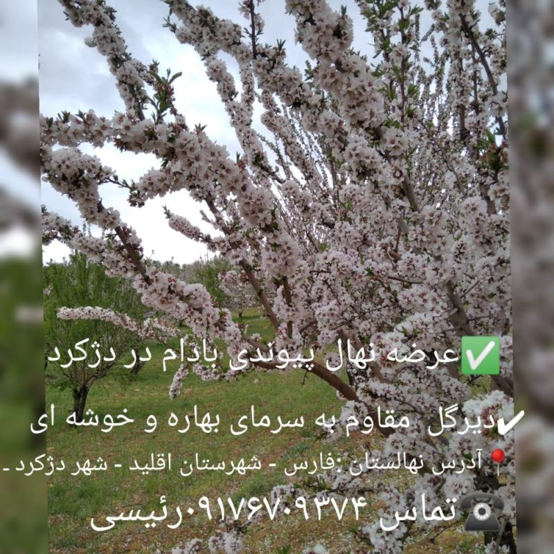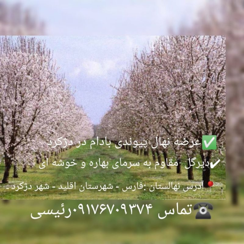 - نهالهای آماده برای احداث باغات بادام در شیراز، اصفهان، سپیدان، مرودشت و نیریز.